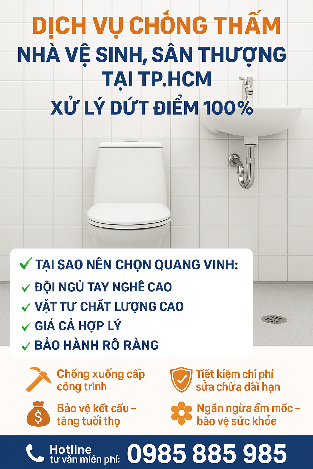 Dịch Vụ Chống Thấm Dột Nhà Vệ Sinh, Sân Thượng Tại TP.HCM – Xử Lý Dứt Điểm 100% Bạn đang gặp tình trạng thấm dột, ẩm mốc, nứt nẻ trần nhà, sàn mái, nhà vệ sinh tại TP.HCM? Đừng để những vấn đề này ảnh hưởng đến chất lượng cuộc sống và kết cấu công … Đọc tiếp